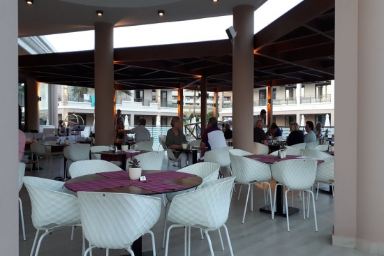 Restaurant bar that serves cocktails, snacks, breakfast and meals all the day long.........