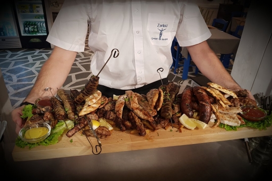 Zorbas is a Greek family taverna, located in Ialyssos beach, next to Atlantica Princess and Area Blue since 1999 . In the menu there are many Greek traditional foods like gyros, kalamari, moussaka, souvlaki, tzatziki, steak and more (you can also tak