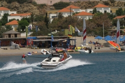 The Watersportcenter Kiotari, located on the Eastcoast of Rhodes, is one of the largest Watersportstations on the island. It offers a big variety of Watersport activities like Windsurfing, Catamaran Sailing, Jetbiking, Waterski, and Wakeboarding. You also can hire one of the license-free Motorboats, to explore the beautiful coastline by yourself, join the 2 hours Seacruise to Lindos on board the Glass-bottom boat, or enjoy one day "Under Sail" on board the Sailing Yacht "Boheme", a Bavaria 46 Cruiser.